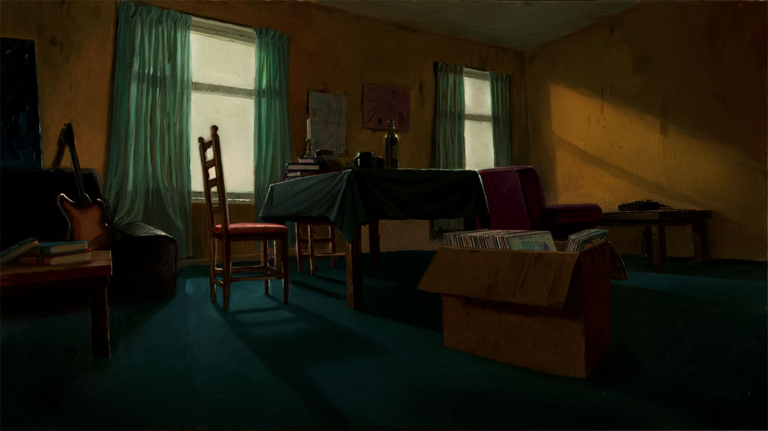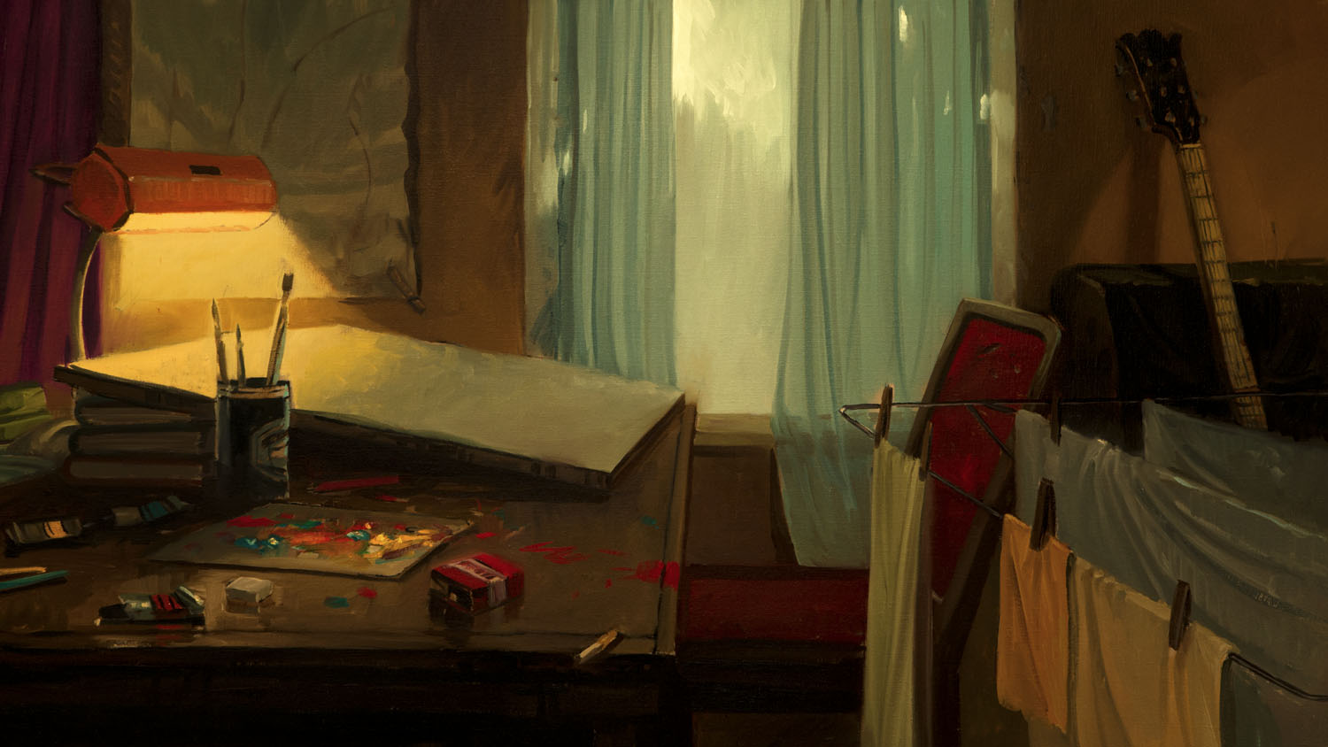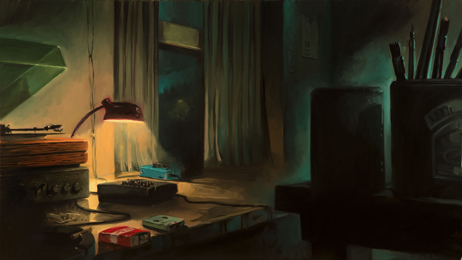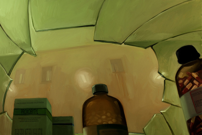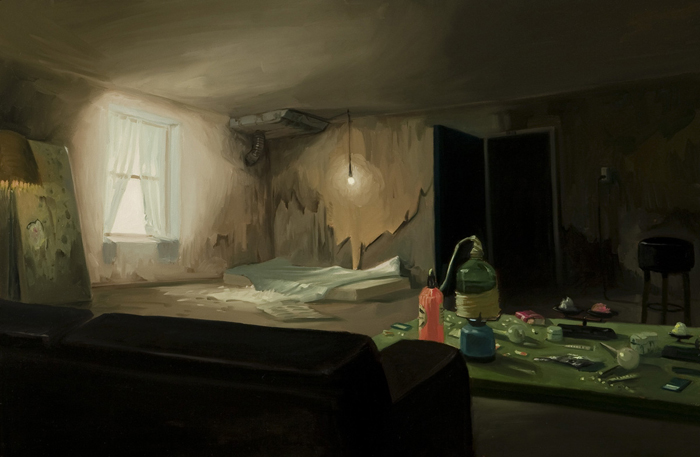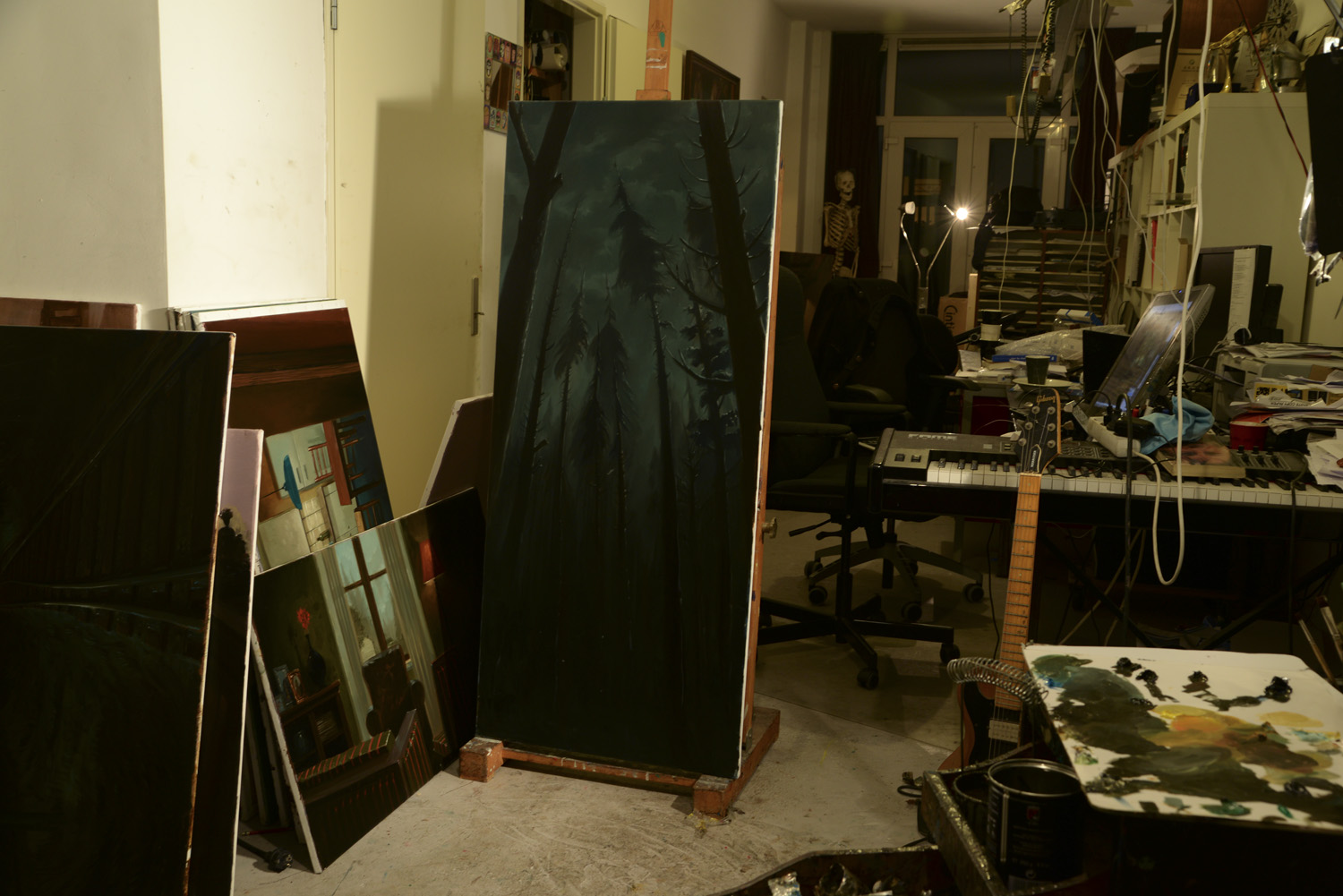 I paint all the backgrounds for my films with oilpaint on large canvasses or on panels.