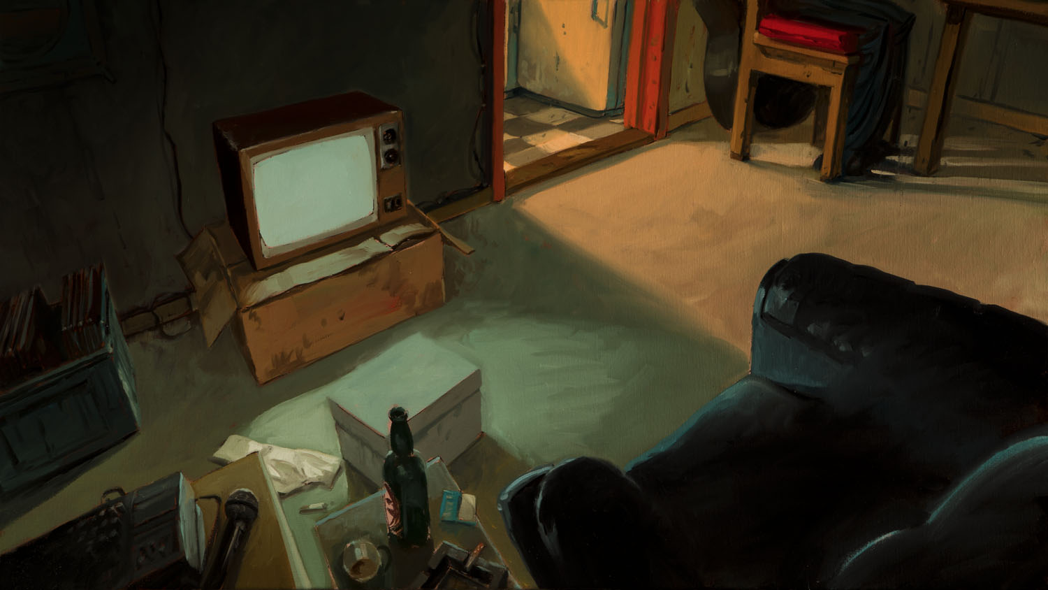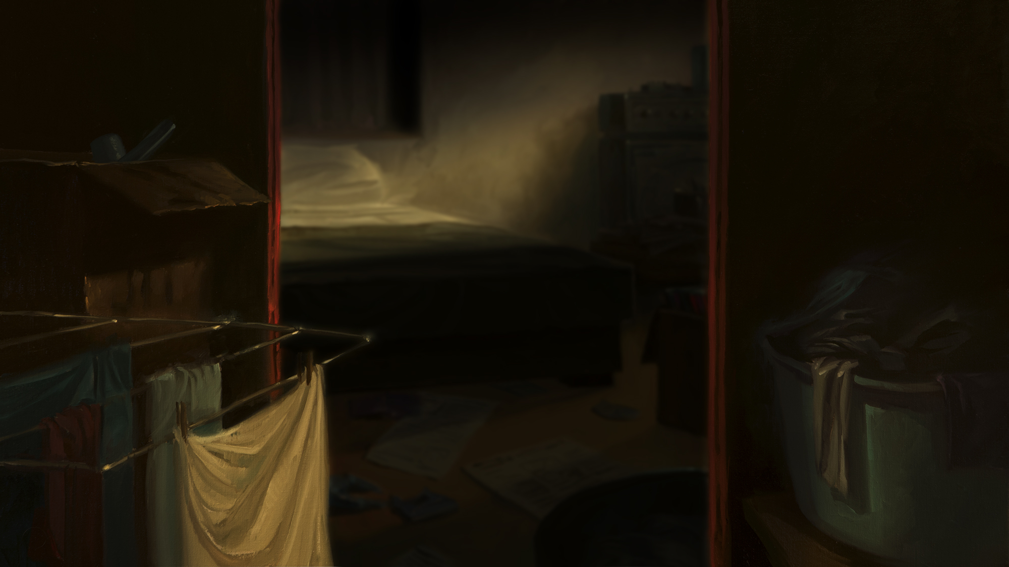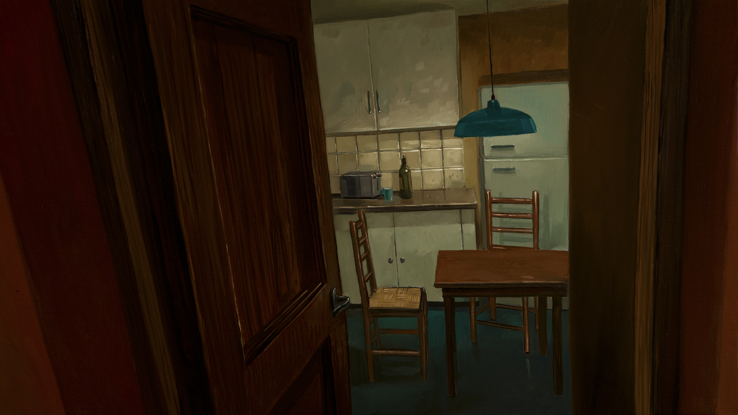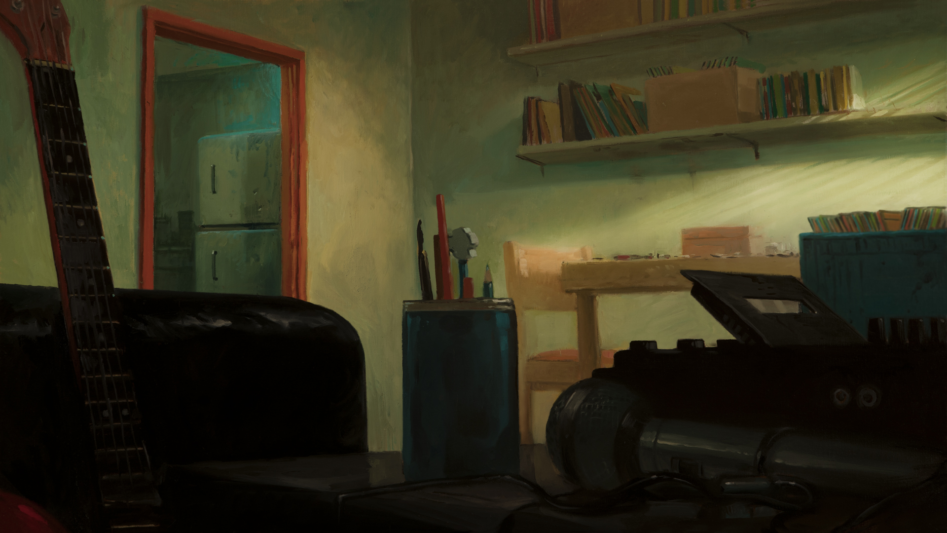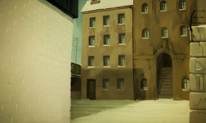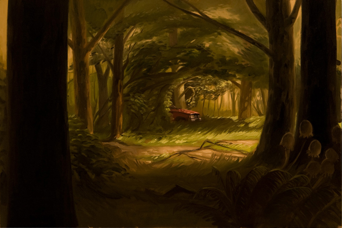 I paint all the backgrounds for my films with oilpaint on large canvasses or on panels.