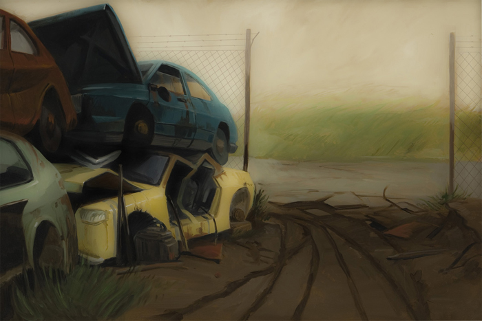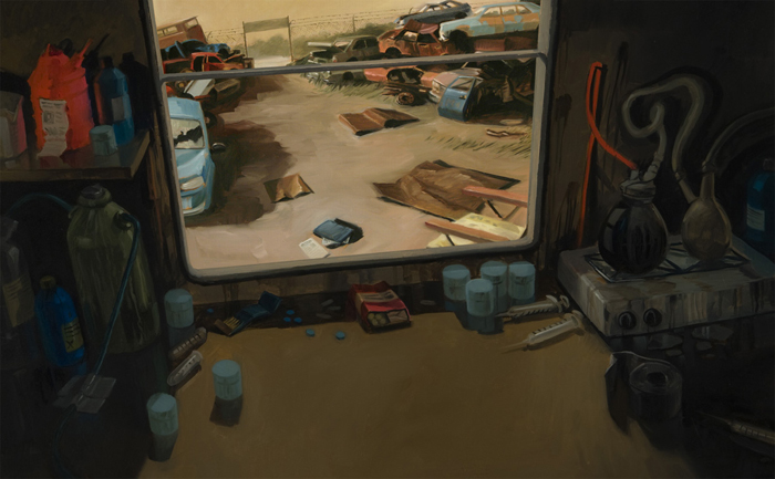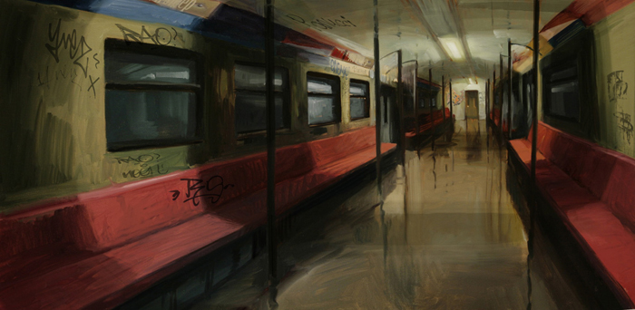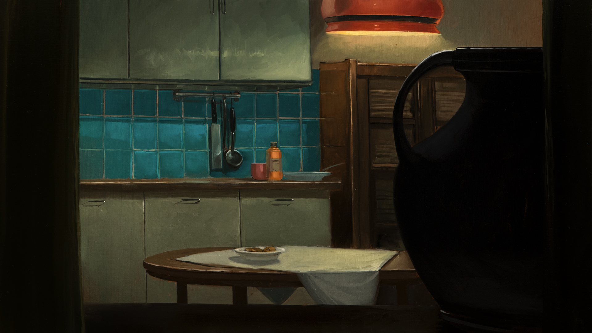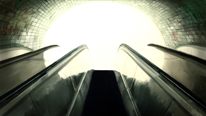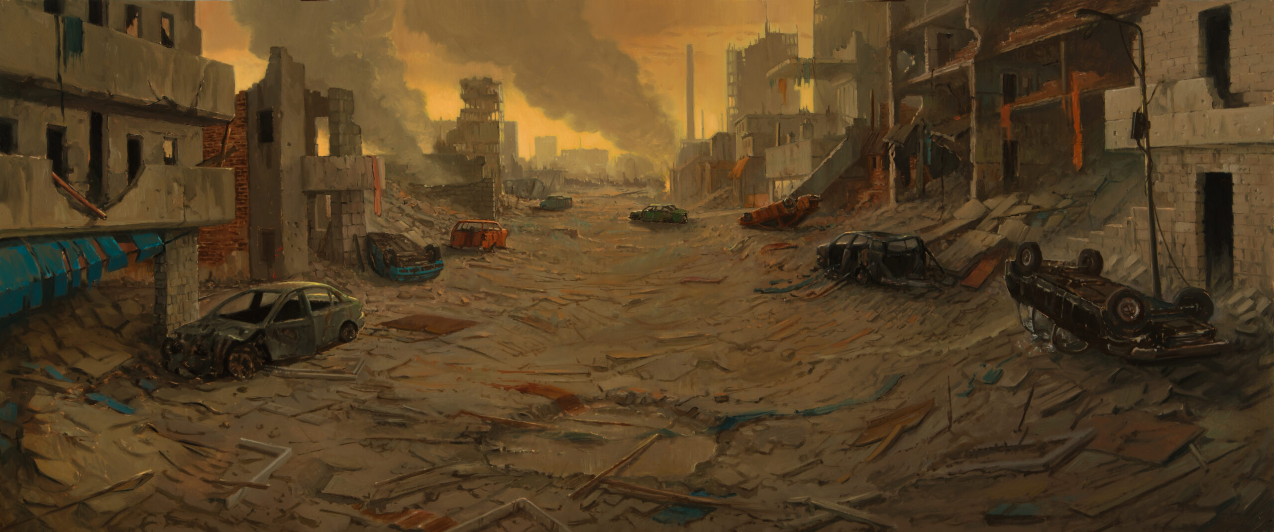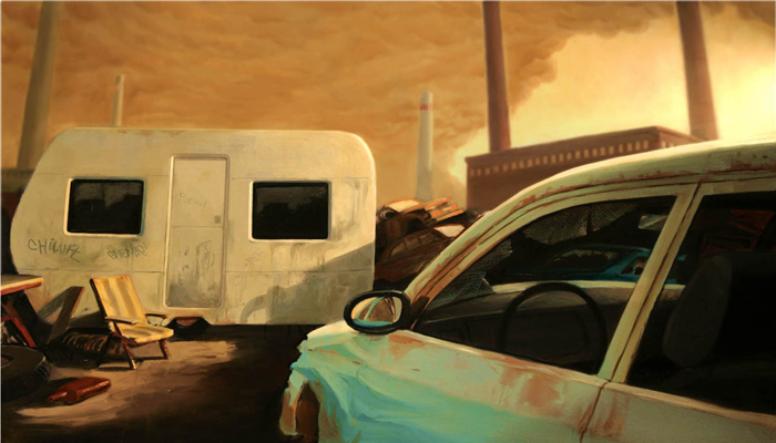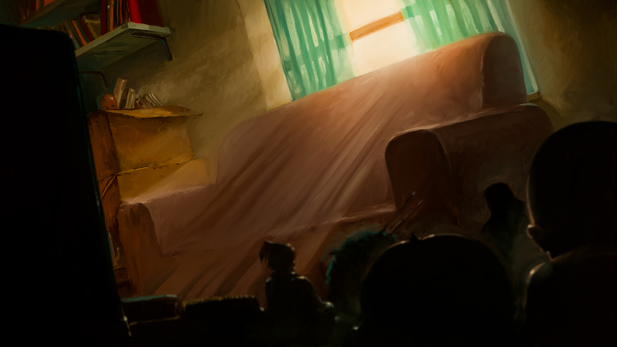 I paint all the backgrounds for my films with oilpaint on large canvasses or on panels.