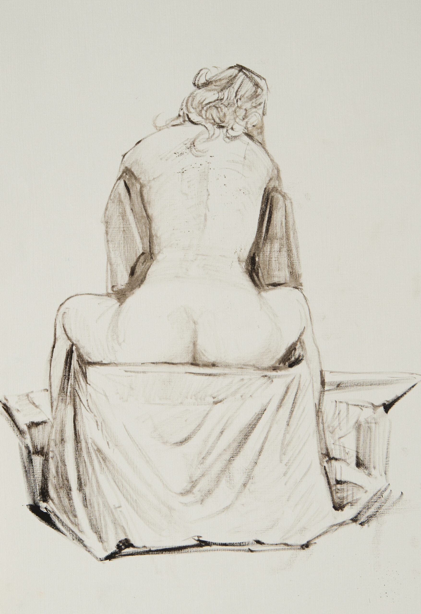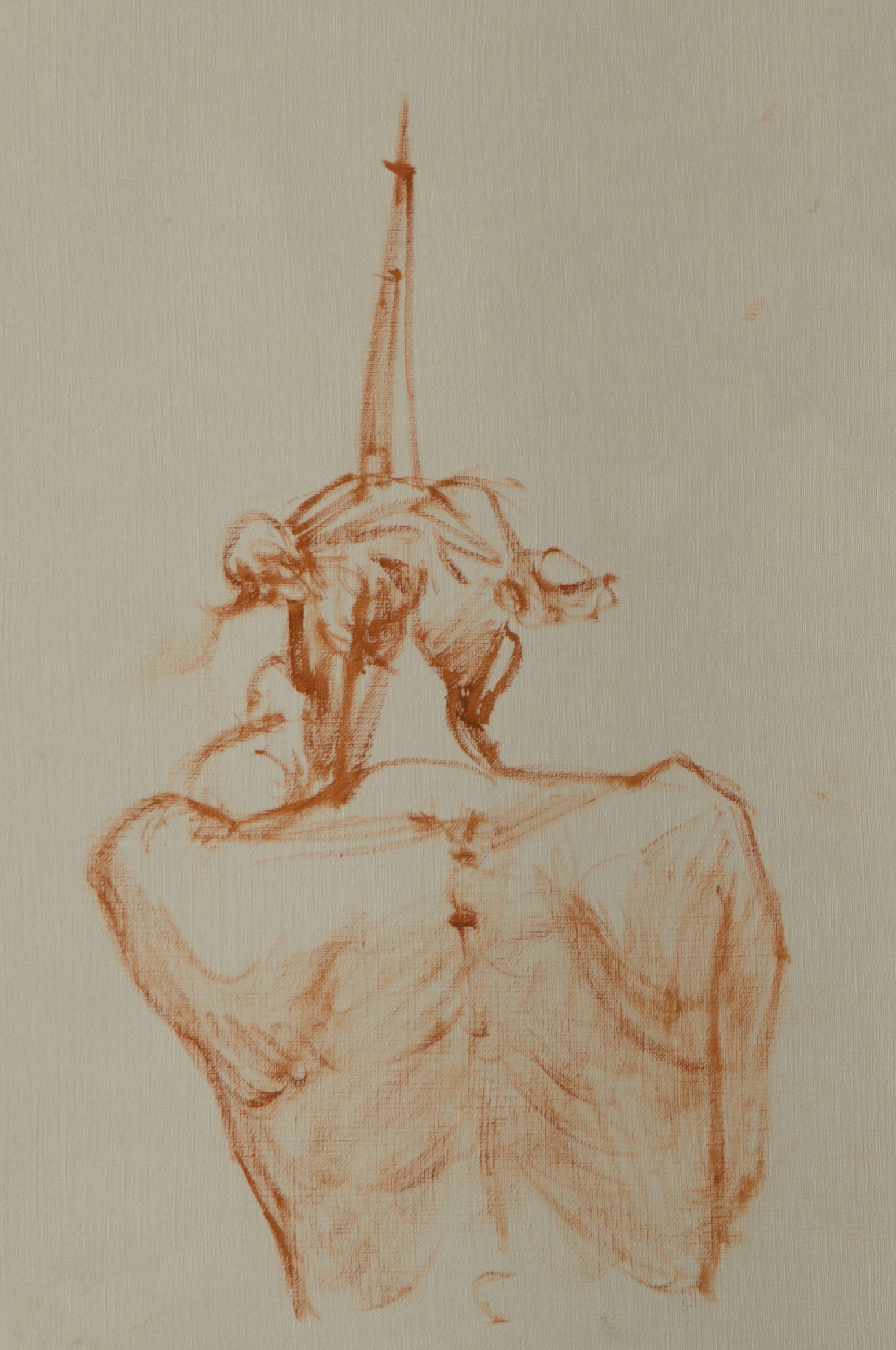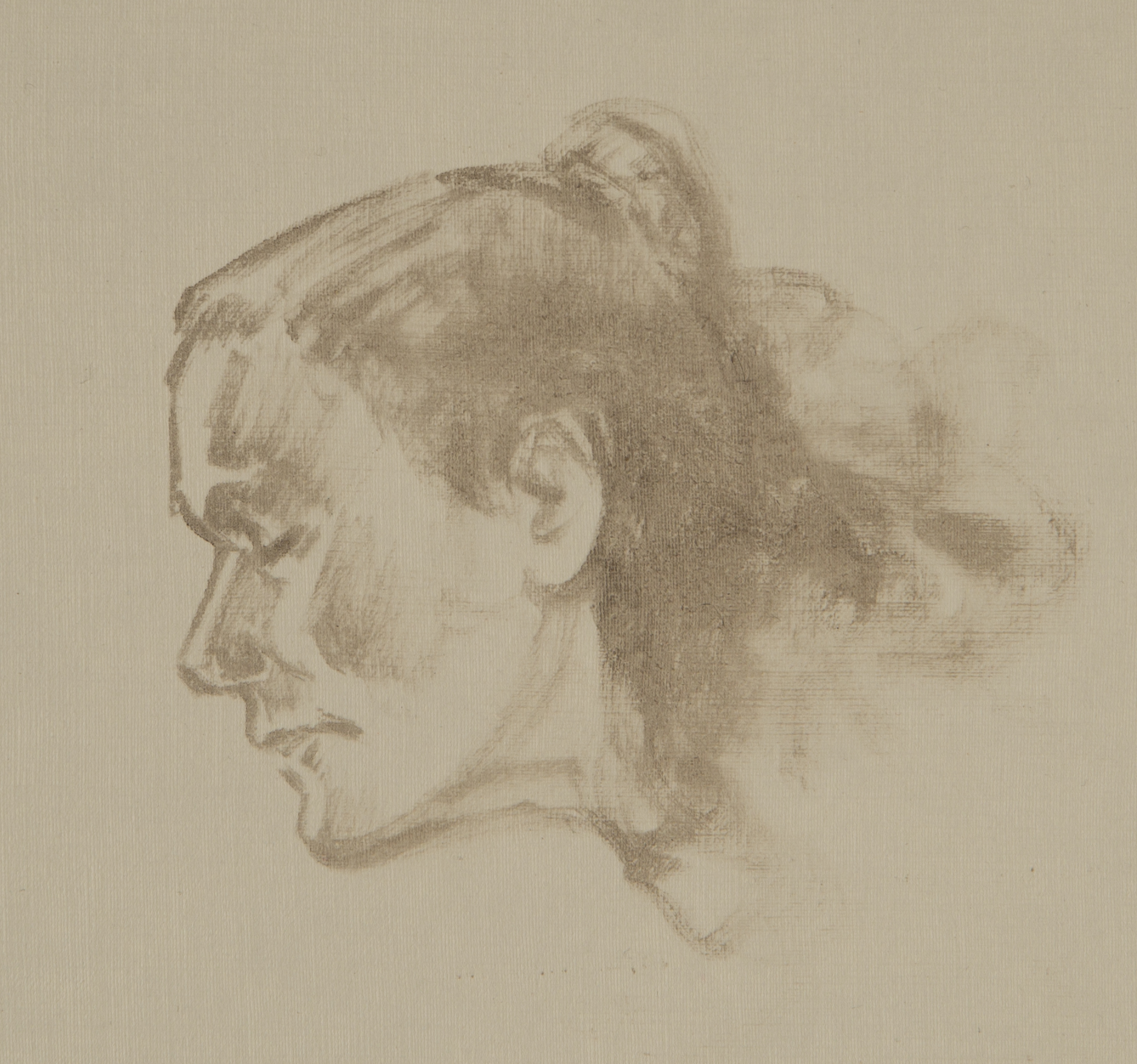 Oilpaint on canvas, oilpaint sketches on prepared paper and charcoal on paper