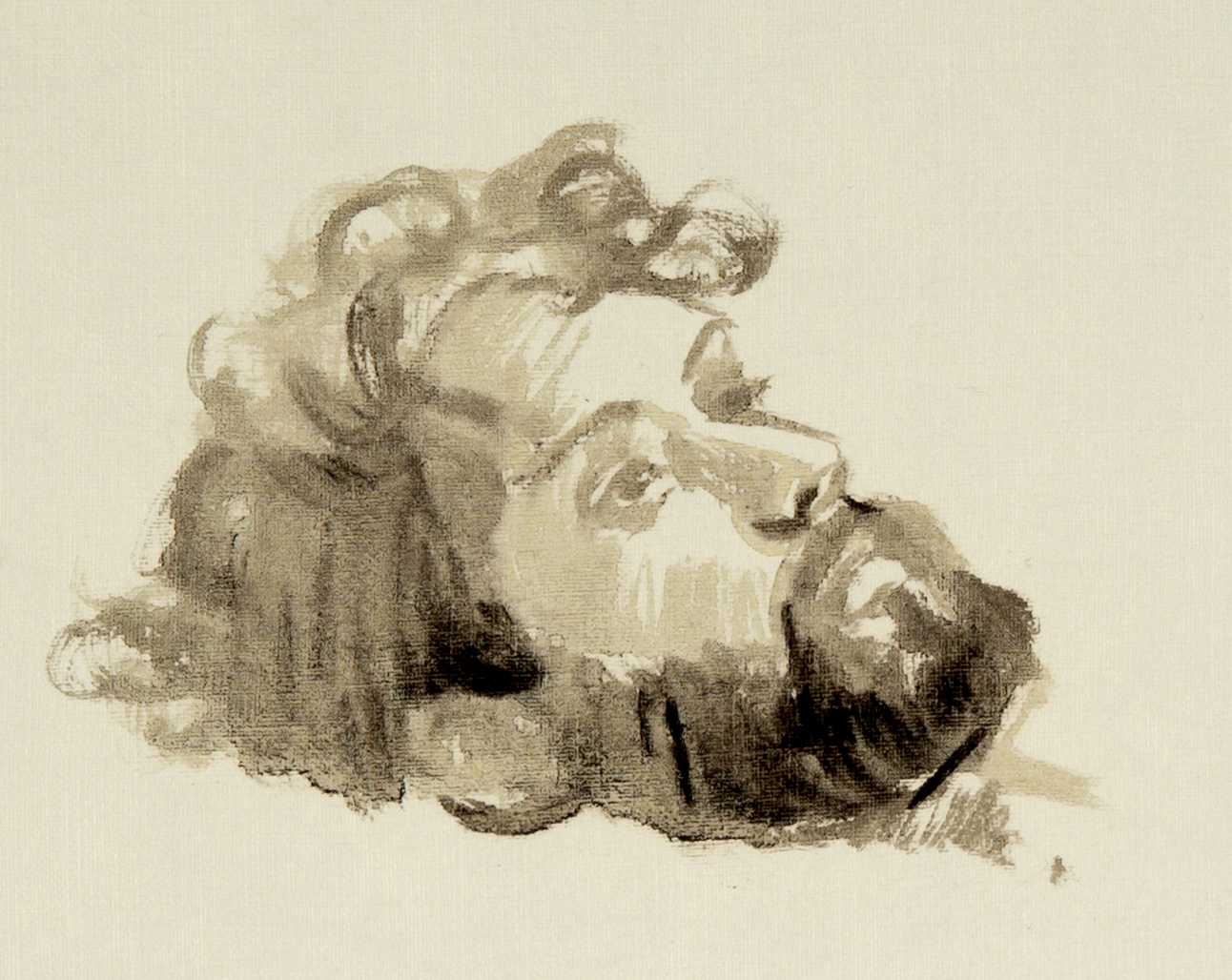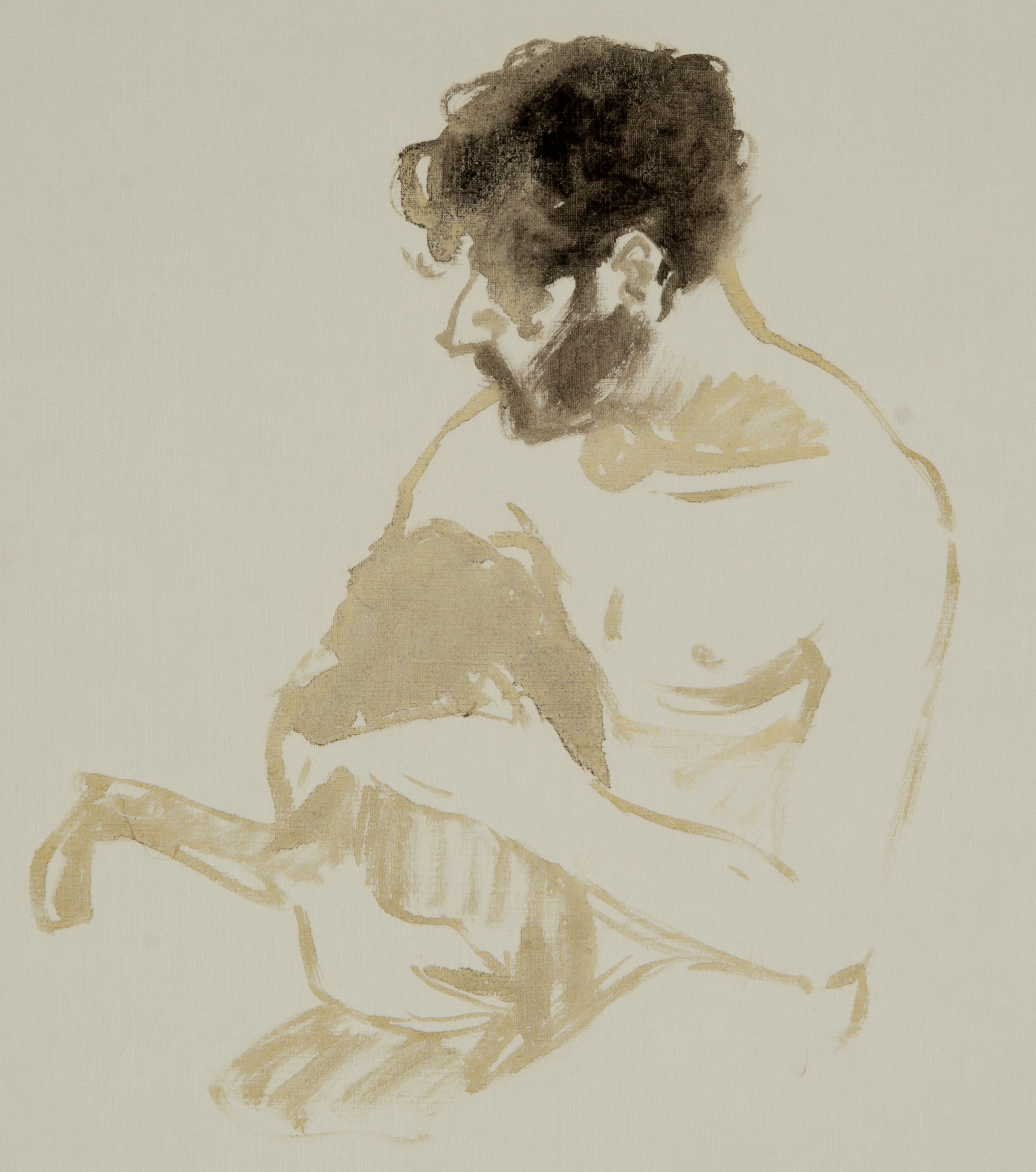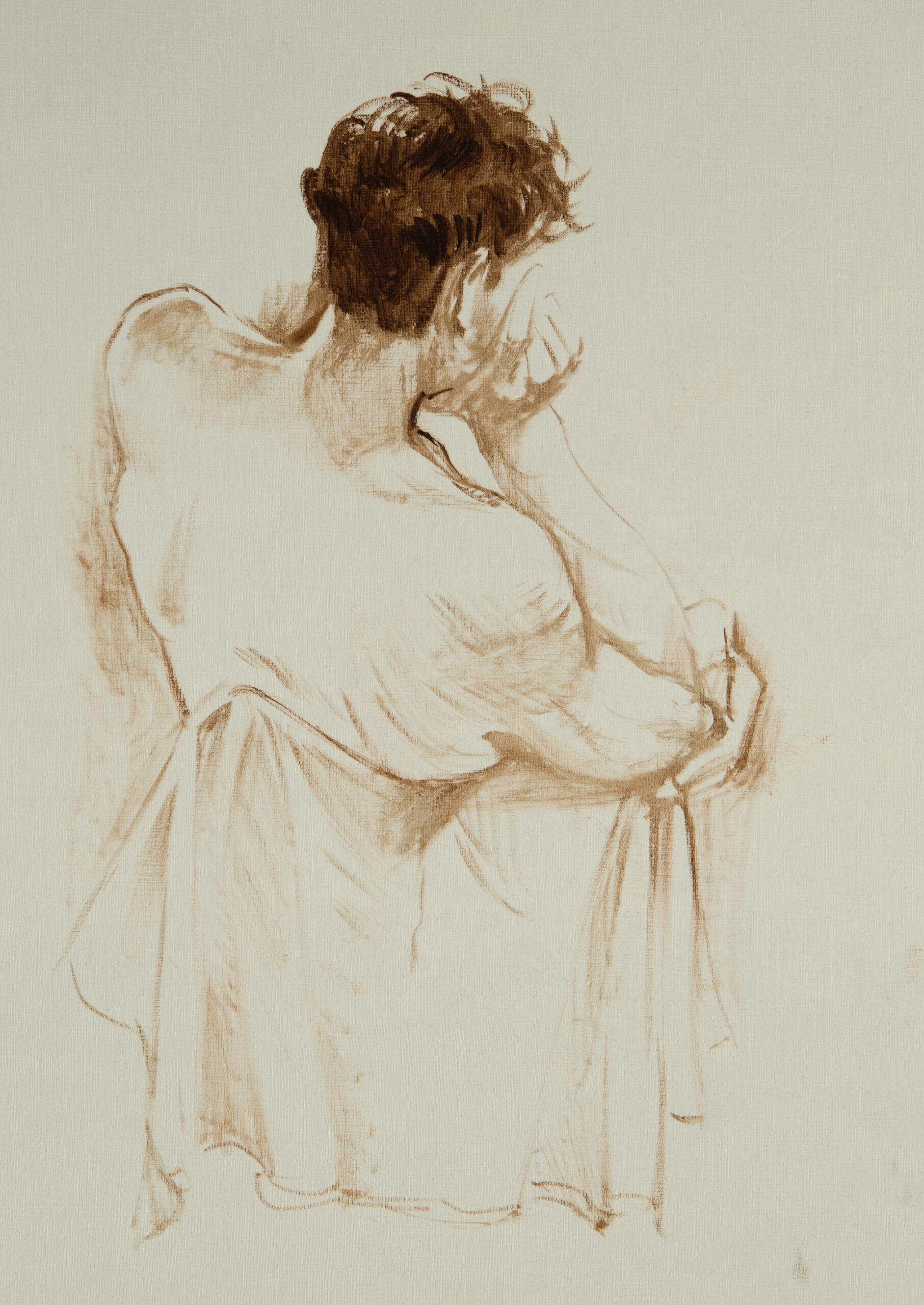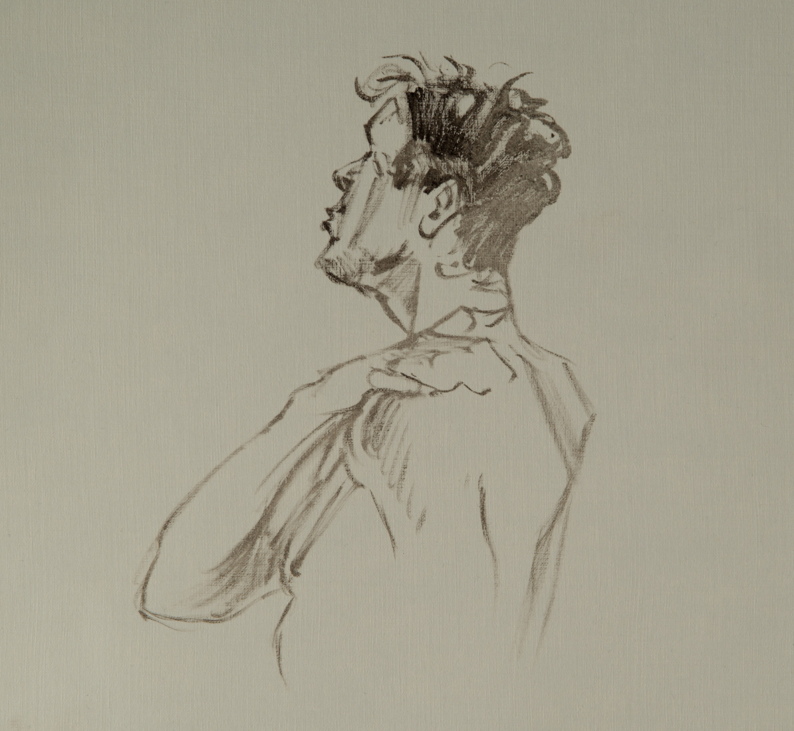 Oilpaint on canvas, oilpaint sketches on prepared paper and charcoal on paper